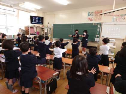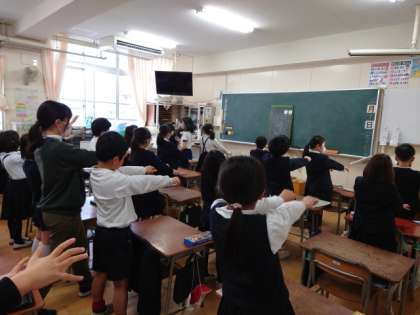 運動委員会の人が各教室を訪れて一緒に取り組みました。
