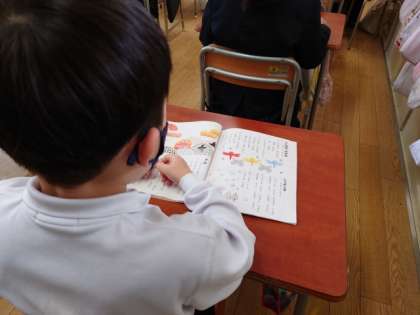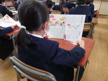 音楽の時間に、いろいろな童謡を歌いました。
