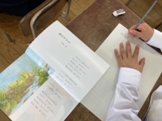 国語科では詩の視写をしました。静かな雰囲気の中、集中して書いていました。