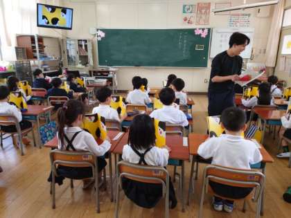 先生のあとについて声を出して読んでいくので、字が読めなくても大丈夫です。