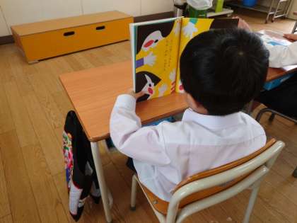正しい姿勢や本の持ち方に気をつけて元気よく読んでいました。