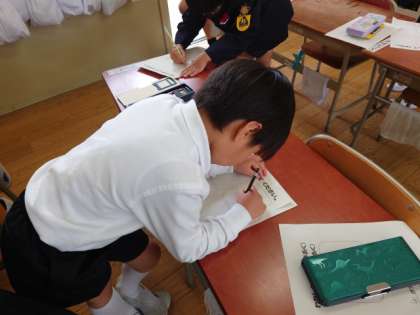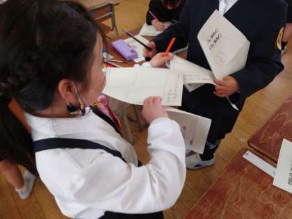 生活科の学習で、クラスのお友だちと仲良くなれるよう、サインの交換をしました。