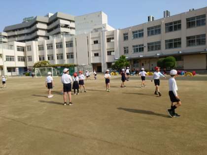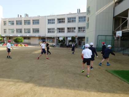 時間を守って登校したあと、運動場で楽しく遊ぶ子の姿も多いです。