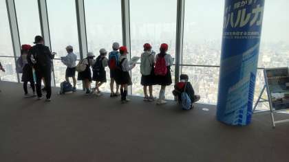 後半は、あべのハルカスに行って、展望台から地域の様子を見ました。