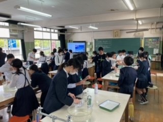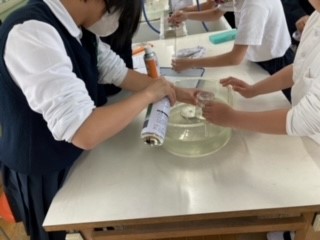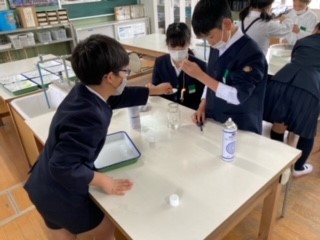 班のみんなと協力して実験を行いました。