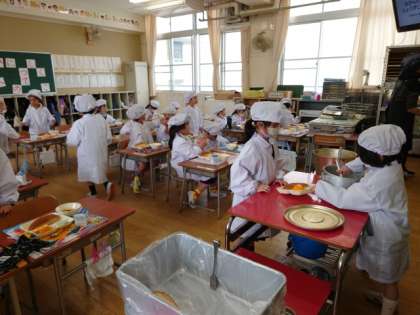 今日の甘夏は、皮が厚くてむくのに苦労しそうだからと、給食調理員さんが、さらに切り目を入れてくれました。