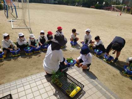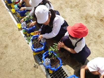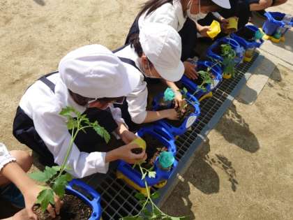 【2組】生活科の時間にミニトマトの苗を植えました。