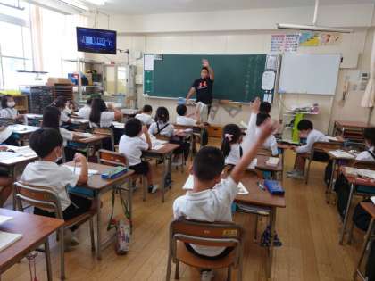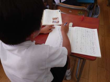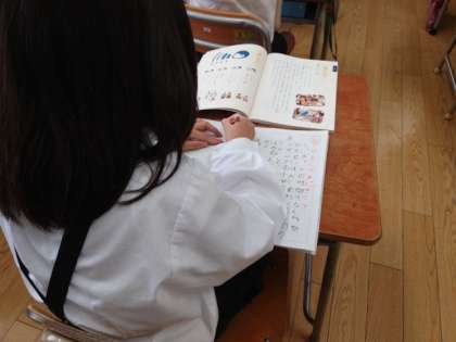 国語の時間で、外国の小学校について書かれた説明文を学習しています。