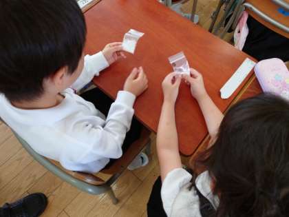 実際に砂糖と塩を手にして、知っていることや思ったことをしっかり話し合いました。
