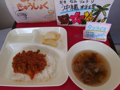 今日のメニューは、タコライス、もずくのスープ、焼きじゃが です。