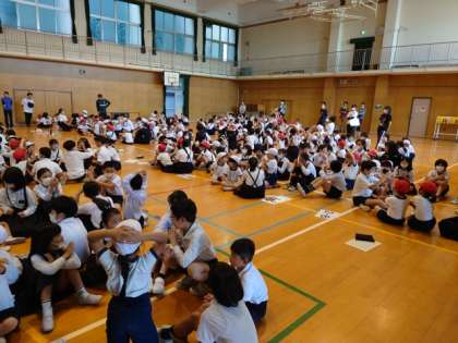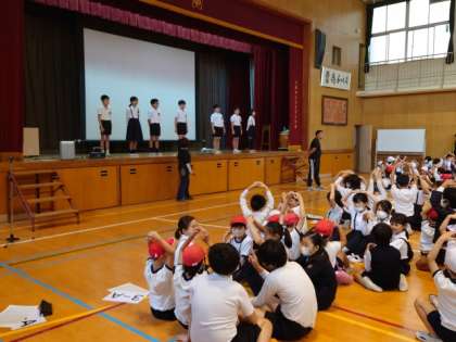 今日に児童集会は、児童数や教室の数など天王寺小学校にちなんだ問題をたて割り班で答える〇✕クイズをしました。