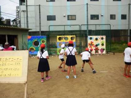 「なげるコーナー」、「けるコーナー」など、運動をいくつかに分けて活動しました。子ども達は、それぞれの運動を楽しみながら、少しでもたくさん挑戦しようと積極的でした。10月中旬まで続けていき、次の運動につなげていきます!