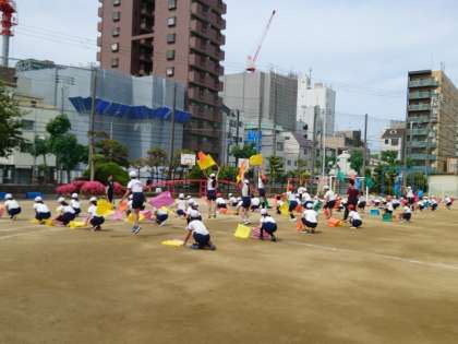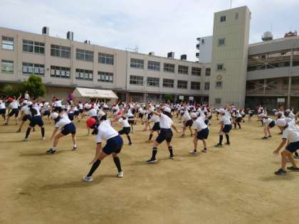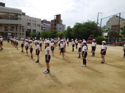 まだ慣れない人も多いのか、運動場では位置取りが難しいようですが、周りで声をかけあいながらがんばっています。
