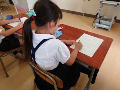【2組】運動会をふりかえって、がんばったことや、楽しかったことをカードに書きました。