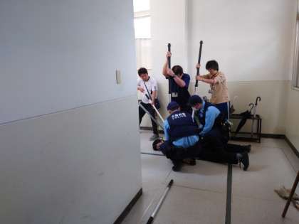 学校に刃物を持った不審者が侵入したという想定での訓練です。