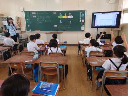 先生の出す問題が終わったら、友だち同士で問題を出し合って、数字カードを並べました。