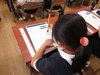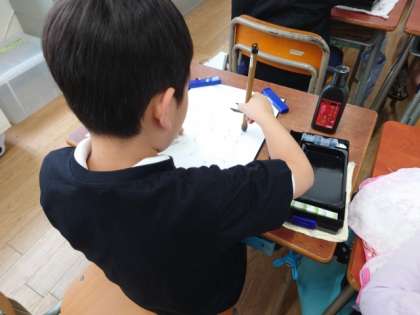 図工の時とは違って、みんな結構緊張しながら書いていましたが、とても上手な筆使いができました。