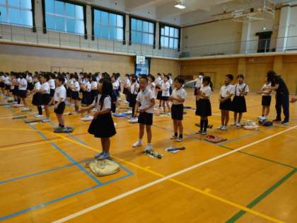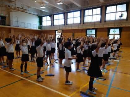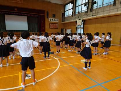今月の下旬にする音楽集会に向けて、学年全員で練習しました。