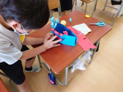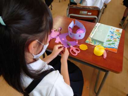 【2組】図画工作科で、楽しい飾りを作りました。