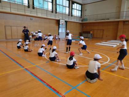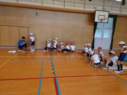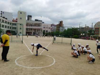 小中連携で来ていただいている中学校の体育科の先生からもアドバイスをもらいながら計測しました。