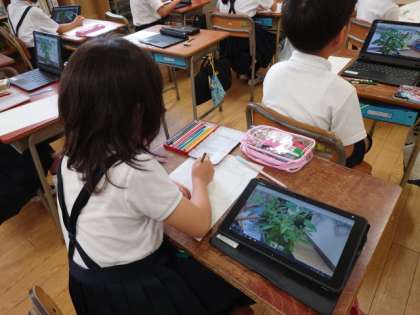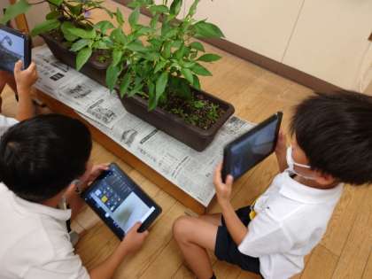 タブレットを使って写真を撮ったり、特徴をとらえて絵を描いたりしました。
