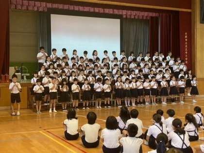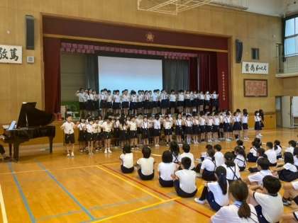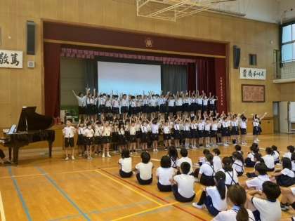音楽集会で3年生がリコーダーの演奏と合唱を行いました。