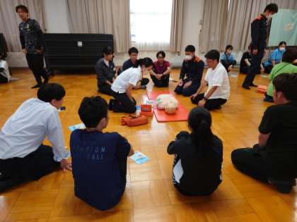 学校では、毎年この時期に心肺蘇生法やAEDの使い方などを実習しています。