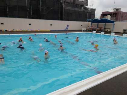 4年生の次は、2年生がプール開きをしました。