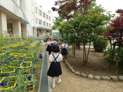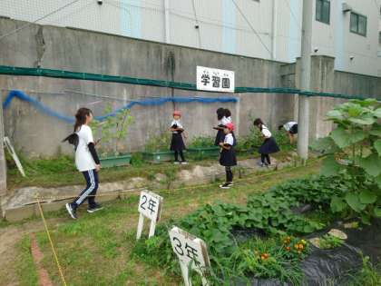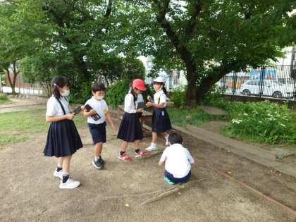 【2組】生活科の学習で、夏の校庭の様子を調べました。
