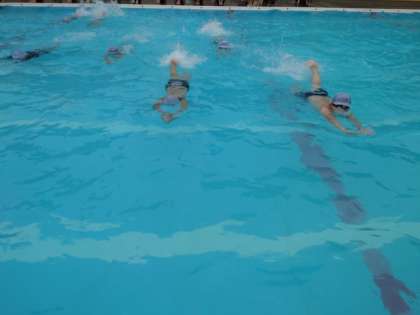 今日は、自分がどれくらい泳げるのか、今の力を試しながらいろいろな泳ぎに挑戦しました。