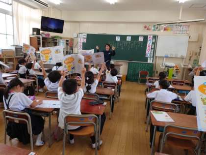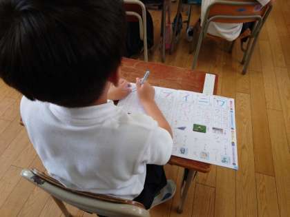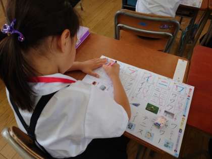 上手に書けた人は、先生に「見て!見て!」の猛アピール。