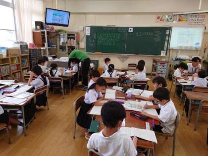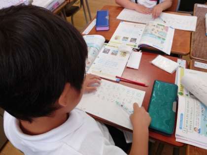 【2組】算数科の学習で、絵を見ながらたし算やひき算のお話を作りました。