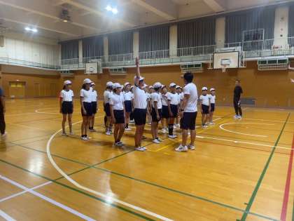2組は、体育科で体つくり運動の集団行動をしました。