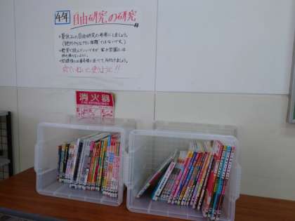 夏休みの自由研究に向けた研究コーナーが廊下にお目見えしました。