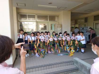 いきいき活動で、子どもたちが七夕飾りを作りました。