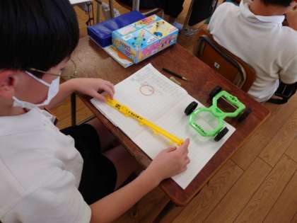 【2組】理科の学習で、風やゴムの力が変わるとどのように働きが変わるのかを調べます。