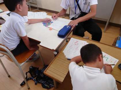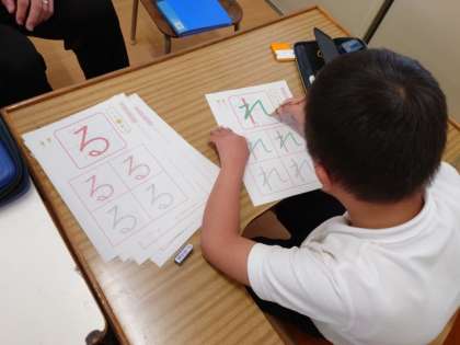先生としっかりコミュニケーションをとりながら、大阪市やひらがなの学習に取り組んでいました。