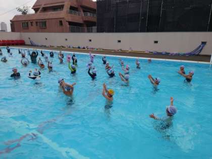 「グワッ グワッ」のリズムに合わせて、水の中で踊ります。