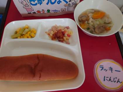 今日のスープはラッキーにんじん入りです。