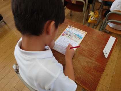【2組】朝の学習の時間に、計算ドリルの答え合わせをしました。