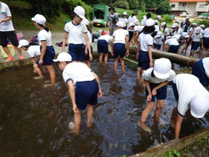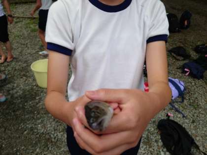 冷たい水の中を格闘して、ついにお魚ゲットしました。