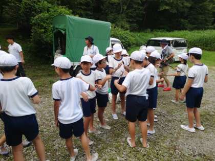 無事に全員が魚(アマゴ)を捕まえて(触っただけの人もいますが)、焼き魚にしていただきました。