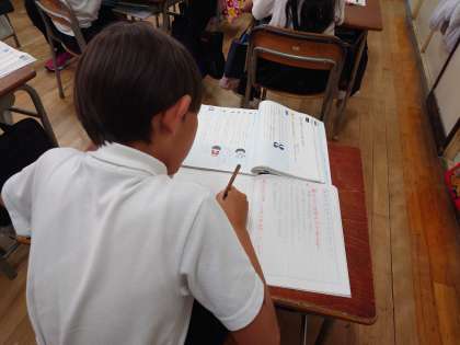 【2組】国語科の学習で、身近な問題について上手に話し合う学習をします。