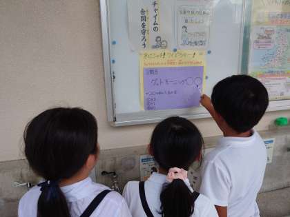 保健委員会の人たちが、朝シャキ週間にちなんだクイズラリーをしてくれました。