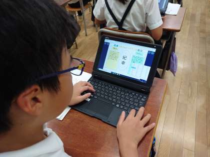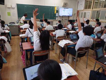 ロイロノートで作ったキャンディーチャートというシンキングツールを使って、友だちと意見を交流しながら考えていました。