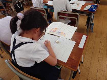 【1組】一番大切にしている貝がらをあげるかどうかで悩む熊の子の気持ちを考えました。