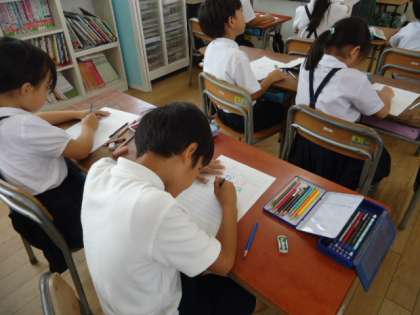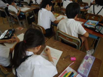 【1組】生活科の時間に、土曜日した天小フェスティバルの振り返りをしました。