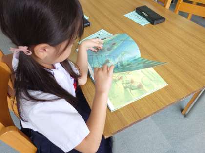 お気に入りの本を見つけた子は、熱心に読みふけっていました。