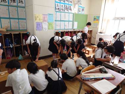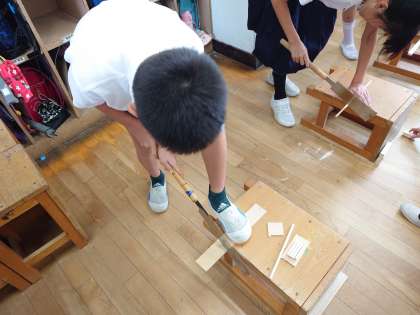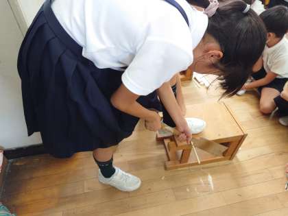 刃を入れる角度や、力加減が難しいの苦戦している人が多かったようですが、友だちと協力して木材を切りました。