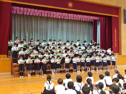 2年生は、最初に「あの青い空のように」をのびやかで元気のよい声で歌いました。
